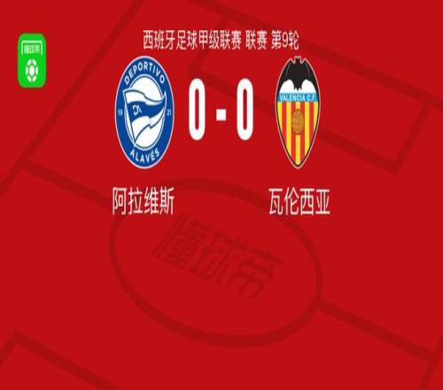北京时间10月21日西班牙足球甲级联赛 联赛 第9轮,阿拉维斯主场对阵瓦伦西亚。最终比分阿拉维斯 0-0 瓦伦西亚。
