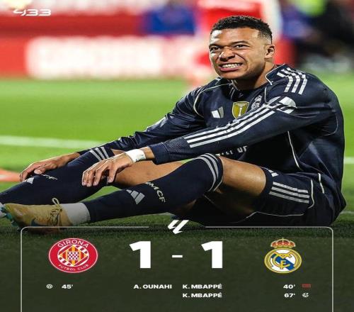 易边再战,维尼修斯造点,姆巴佩主罚命中。最终皇马客场1-1战平赫罗纳,遭遇西甲3连平,这是皇马自2019年以来首次单赛季遭遇西甲三连平。