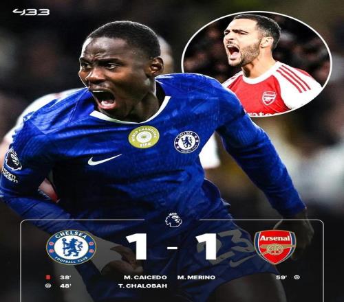随后第58分钟,梅里诺同样用一记头球扳平比分,两队重回同一起跑线。 不过,多打一人的枪手并未能发挥人数上的优势,最终,客场1-1战平切尔西。